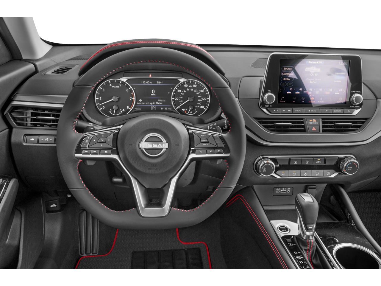 2025 Nissan Altima 2.5 SR AWD Gray Sky Pearl with Charcoal interior equipped with 2.5 Liter 4 cylinder producing 182 horsepower paired with Xtronic CVT transmission with Intelligent All Wheel Drive. Safety equipment includes standard Nissan 360 Safety Sheild 360 with Automatic Emergency Braking with Pedestrian Detection, Rear Automatic Braking, Blind Spot Warning, Rear Cross Traffic Alert, Lane Departure Warning, Intelligent Forward Collision Warning, and Rearview Monitor Back up Camera. Comfort items include 8 way Power Drivers Seat, Cruise Control, Apple CarPlay, Android Auto, Bluetooth® Hands Free Phone System, SiriusXM, and Nissan Intelligent Key with Remote Start. Equipped with SR Premium Package adding Power Sliding Sunroof, Leather appointed seats, Heated Front Seats, Dual Zone Automatic Climate Control, 2 way Driver Power Lumbar, 4 way Power Passenger Seat, NissanConnect, Wireless Apple CarPlay, Wireless Android Auto, and Wireless Phone Charging Pad.
