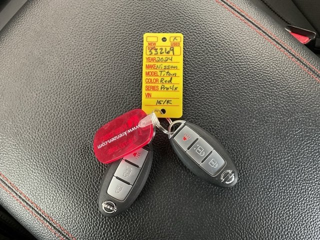 Clean CARFAX. 2024 Nissan Titan PRO-4X Red Alert 4WD 9-Speed Automatic 5.6L V8 DOHC 32V LEV3-ULEV70 400hp Titan PRO-4X, 4WD, 120V Outlet in Bed, AM/FM radio: SiriusXM, Apple CarPlay/Android Auto, Auto High-beam Headlights, Blind Spot Warning, Front & Rear Parking Sensors, LED Tailgate Area Illumination, LED Under Rail Bed Lighting, PRO-4X Utility Package, Speed control, Utilitrack System w/2 Tie-Down Cleats.